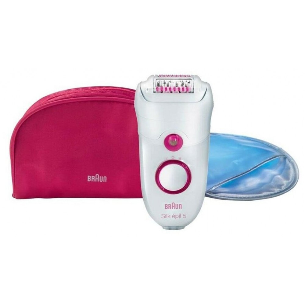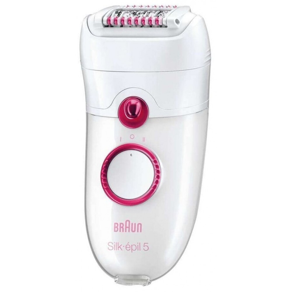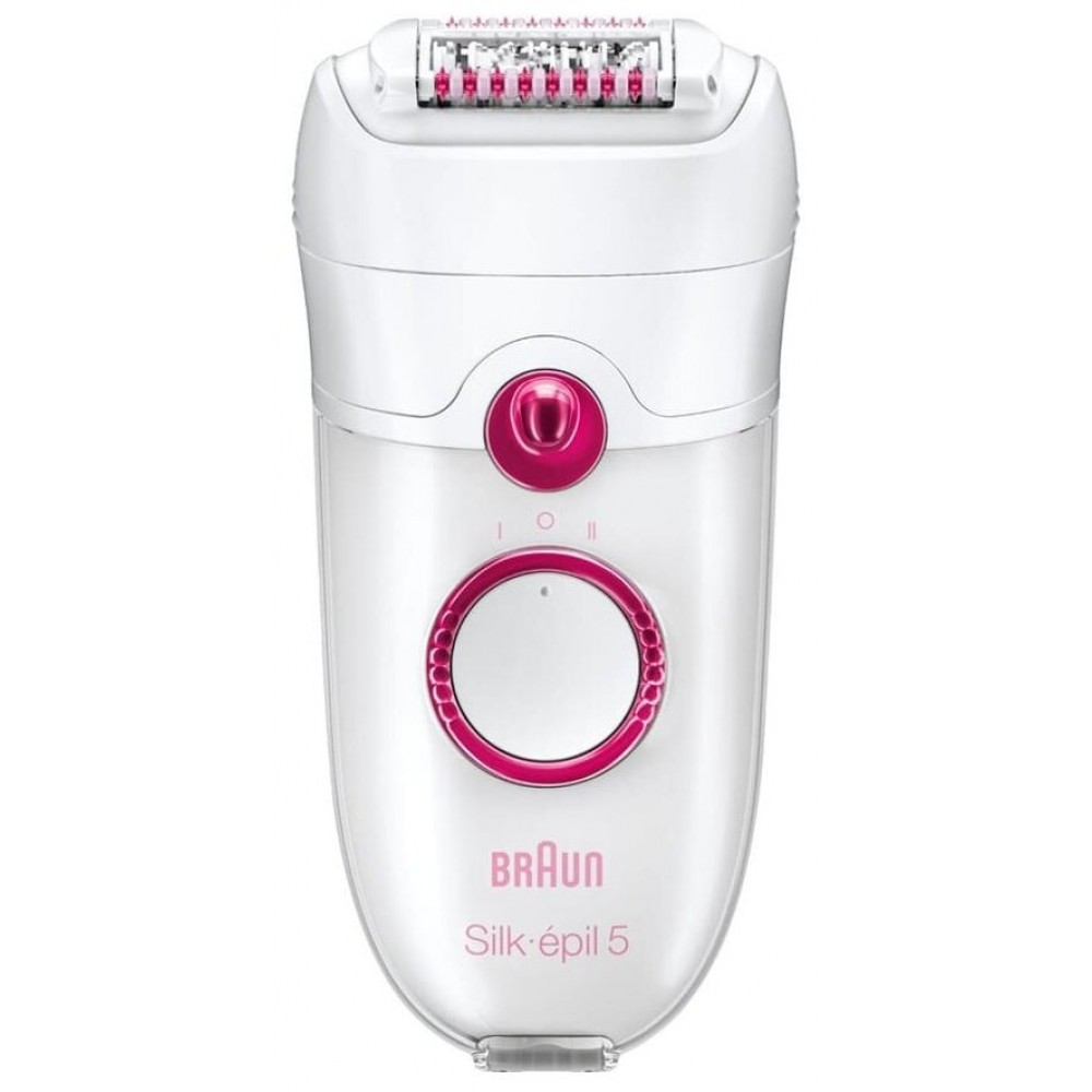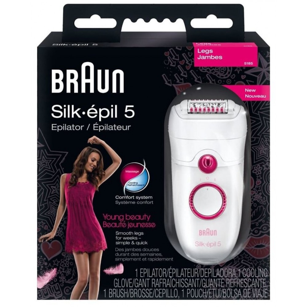 Braun 5185 – эргономичный прибор для эпиляции классического белого цвета с ярко-розовыми акцентами. Работает эпилятор от электросети, поэтому требует соблюдения правил безопасности. В комплект входит специальная охлаждающая рукавичка, которая минимизирует дискомфортные ощущения при эпиляции, щеточка для очистки прибора от волосков и стильная яркая косметичка для хранения эпилятора.