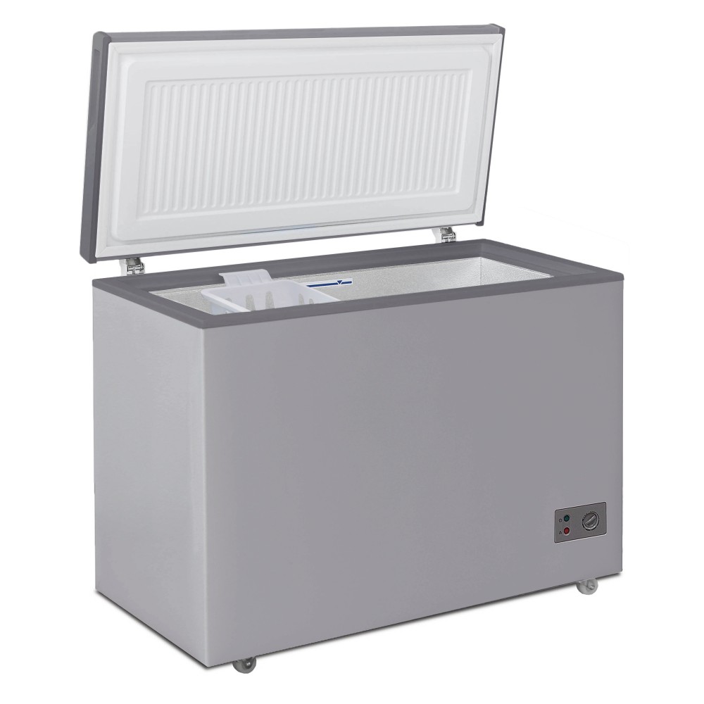 Морозильный ларь Бирюса M240KX представлен в сером корпусе в горизонтальном исполнении. Модель с глухой крышкой предусматривает одну камеру, в которой дополнительно использует подвесную корзину. В ней можно хранить продукты небольшого размера, которые чаще всего пользователь достает. Вместительность ларя Бирюса M240KX составляет 220 л. Показатель мощности замораживания соответствует 14 кг/сутки. В камере сохраняется минимальная температура -18 градусов. В течение 11 часов внутри камеры сохраняется холод, поэтому при неполадках в энергосети у вас будет некоторое время, чтобы их исправить, не допустив порчи продуктов. Размораживание камеры происходит вручную. Ножки-колесики обеспечивают более легкое и удобное перемещение морозильного агрегата с применением минимальных усилий.