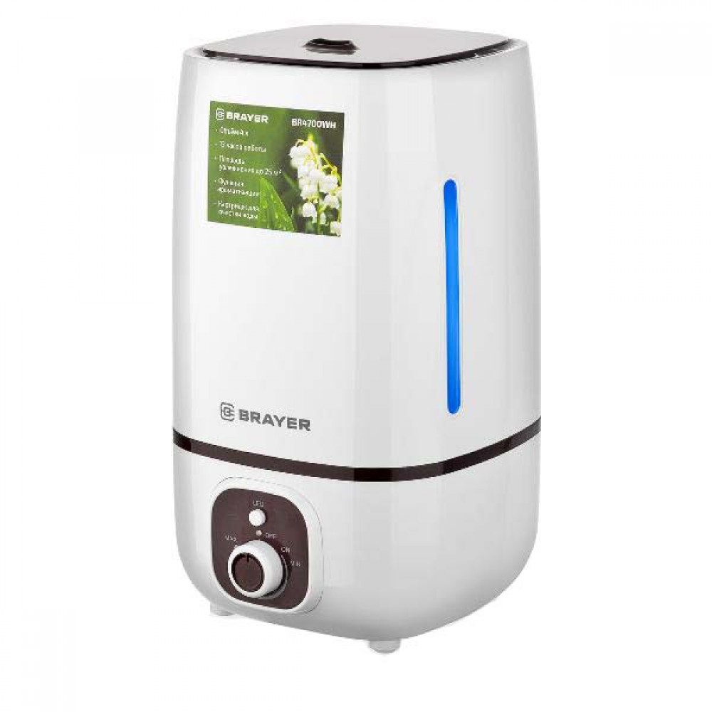 Увлажнитель воздуха Brayer BR4700WH оборудован резервуаром объемом 4 л, что обеспечивает до 13 ч непрерывной работы в максимальном режиме. Устройство позволяет поддерживать благоприятный микроклимат в помещении площадью до 25 м2. Направление струи пара можно регулировать, что помогает добиться эффективного и равномерного увлажнения воздуха. Для создания расслабляющей атмосферы предусмотрена функция ароматизации. Активация и настройка интенсивности работы осуществляются посредством механической панели управления. Увлажнитель воздуха Brayer BR4700WH оснащен индикаторами, которые оповещают о включении и уровне воды. Устройство оборудовано подсветкой. Благодаря этому модель можно использовать в качестве ночника. При отсутствии воды происходит автоматическое отключение, что обеспечивает дополнительную безопасность в процессе эксплуатации. Увлажнитель можно устанавливать на пол или фиксировать на столе.