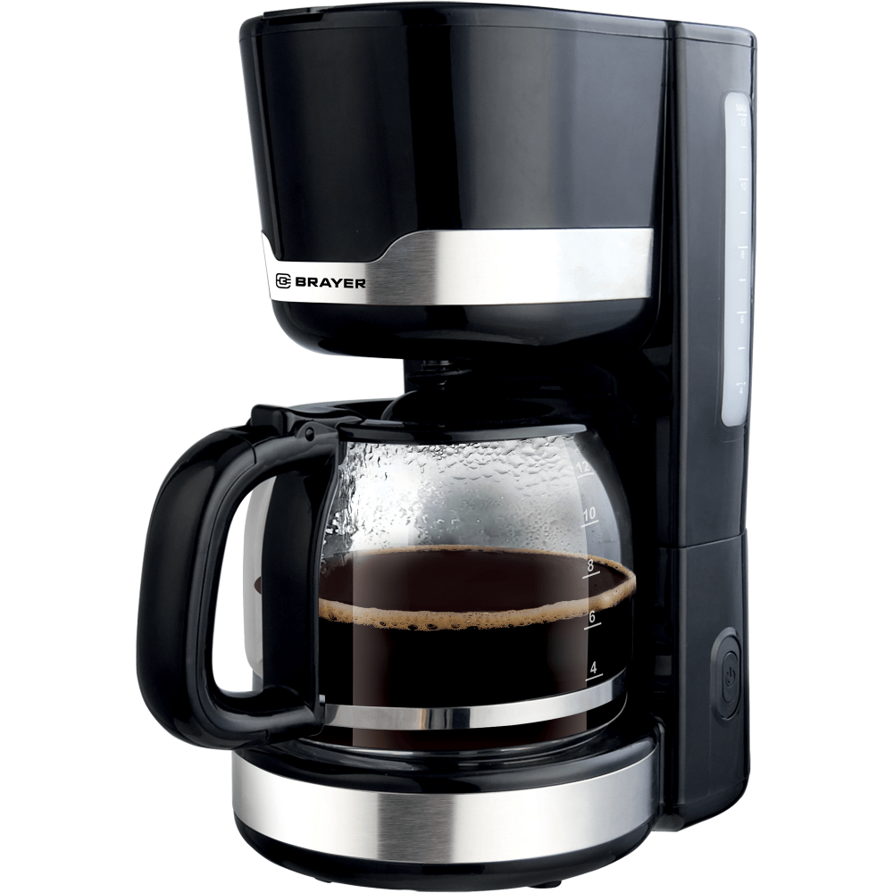 Кофеварка капельная Brayer BR1120 используется для приготовления американо. Молотые зерна засыпают в нейлоновый фильтр. Резервуар для воды съемный, вмещает до 1,5 л. Стеклянная колба с градуировкой обладает прозрачными стенками, позволяет отследить уровень наполненности и дополнена функцией подогрева.
