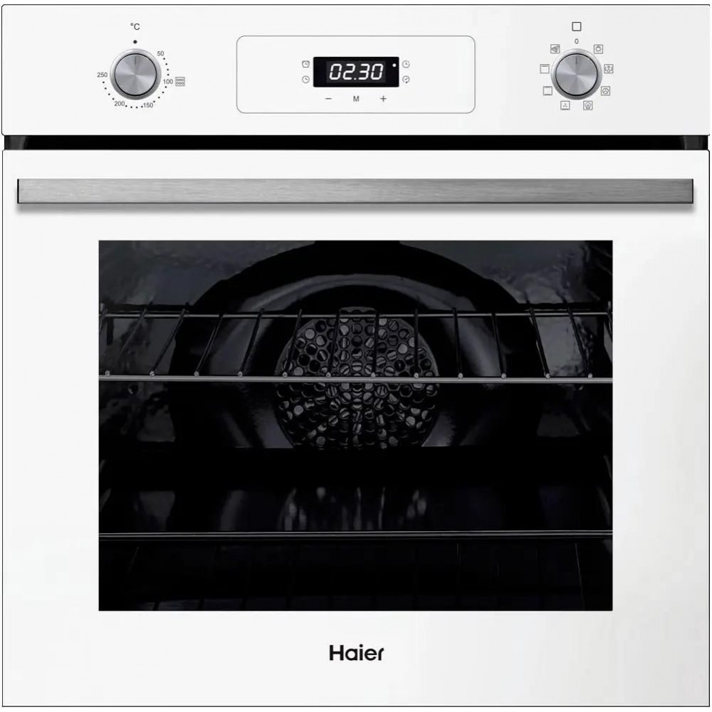 Электрический духовой шкаф Haier HOD-P08TGW с внутренним пространством объемом 70 л выполнен в белом корпусе. На лицевой панели содержатся две поворотные ручки для выбора температуры нагрева и режима, а также электронный дисплей с сенсорными кнопками. При помощи сенсорных кнопок можно настроить отключение программы по таймеру. Это поможет контролировать процесс приготовления блюда, находясь в другой комнате и не следя за временем. Для безопасной эксплуатации прибор содержит утапливаемые поворотные ручки.