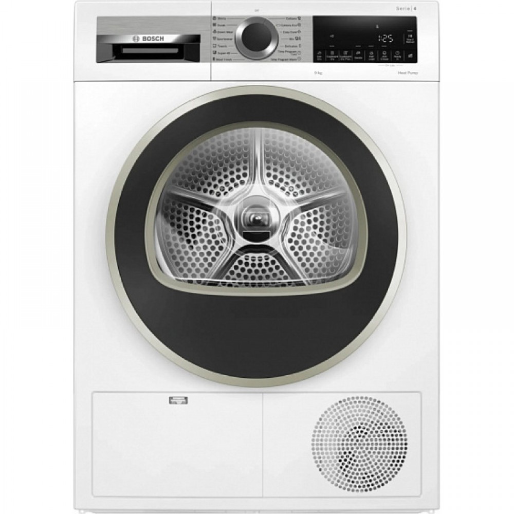 Сушильная машина Bosch WQG1420AME с тепловым насосом обеспечивает бережное воздействие на ткани. Она рассчитана на загрузку до 9 кг белья за один цикл. В модели реализованы 15 автоматических программ для различных типов тканей: хлопок, шерсть, деликатное белье.