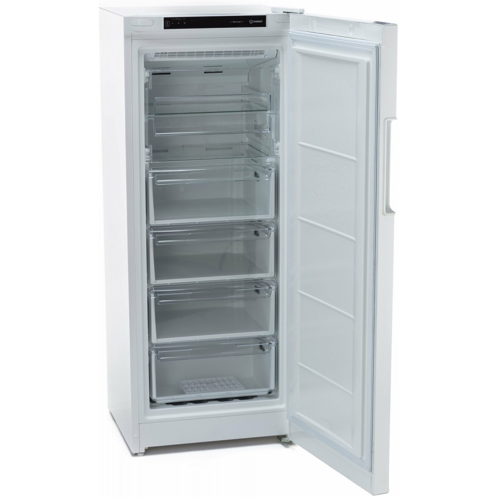 Управление функционалом Indesit DFZ 4150 осуществляется через сенсорную панель. Внутри прибора предусмотрено 4 выдвижных и 2 ящика с дверцей. При отсутствии электричества технология автономного сохранения холода не допускает размораживания продуктов на протяжении 15 ч. Регулируемые ножки способствуют устойчивому положению модели в любой плоскости.