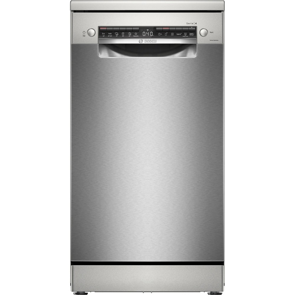 Отдельностоящая модель Бош отлично впишется в кухонный интерьер, главное — правильно выбрать место, чтобы подвести коммуникации. Имеет уменьшенную ширину — благодаря этому поместится даже на очень маленькой кухне. В камеру можно загрузить ограниченное число комплектов: 10 шт.
