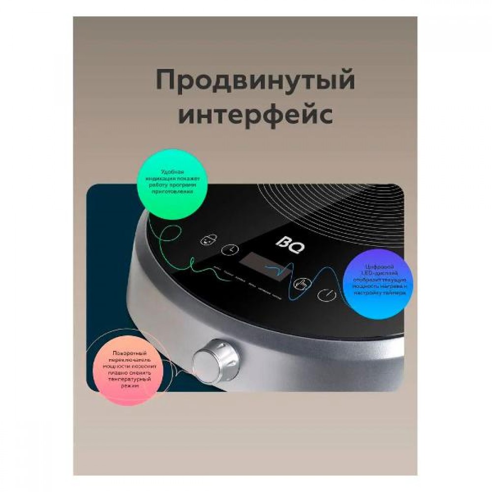 Плита компактная электрическая BQ HP121SS, имеющая в своем оснащении одну конфорку мощностью 2.4 кВт, предоставит для кулинара все необходимые условия для приготовления блюд в самых стесненных и нестандартных условиях. За счет небольших размеров 29x37x7 см этот прибор уместится даже на маленькой кухонной зоне, но особенно актуально его приобретение для дачи или общежития. Главной особенностью устройства стала индукционная конфорка диаметром 200 мм, поддерживающая готовку в специальной посуде с минимальным размером дна 120 мм.