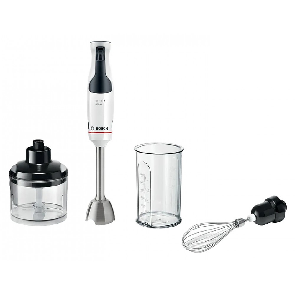 Блендер Bosch MSM4W421 сочетает высокую мощность и продуманную эргономику для комфортного приготовления блюд. Нож с 4 лезвиями и двигатель 800 Вт обеспечивают эффективное измельчение и однородную текстуру. Плавная регулировка скорости помогает точно настроить работу под любые задачи.