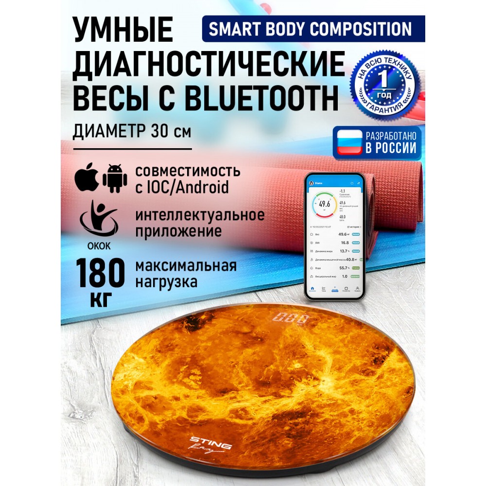 Напольные весы STINGRAY ST-SC5000A – умные диагностические весы с LED дисплеем и синхронизацией с телефоном на Ios и Android. Используются для измерения уровня жира, воды, мышечной и костной массы. Весы обеспечивают взвешивание до 180 килограммов с точностью до 50 граммов, способны работать в различных единицах измерения веса (килограмм / фунт), в диапазоне значений роста от 75 до 225 сантиметров и в диапазоне значений возраста от 10 до 85 лет. 8 ячеек памяти для фиксации информации об изменении в весе каждого члена семьи. Для экономии заряда батарей весы отключаются автоматически, если не используются, а индикаторы перегрузки и замены батареи сделают работу весов бесперебойной в течение длительного времени.весы напольные для веса, весы напольные электронные точные до 180 кг,