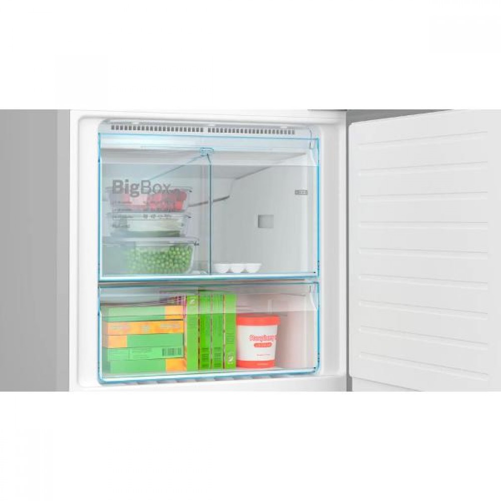 Морозильное отделение (105 л) оснащено двумя выдвижными ящиками. Верхний — увеличенного объема (Big Box) — снабжен разделителем. Мощность замораживания составляет 18 кг в сутки. При сбое в подаче питания содержимое будет сохраняться от таяния в течение 24 часов.