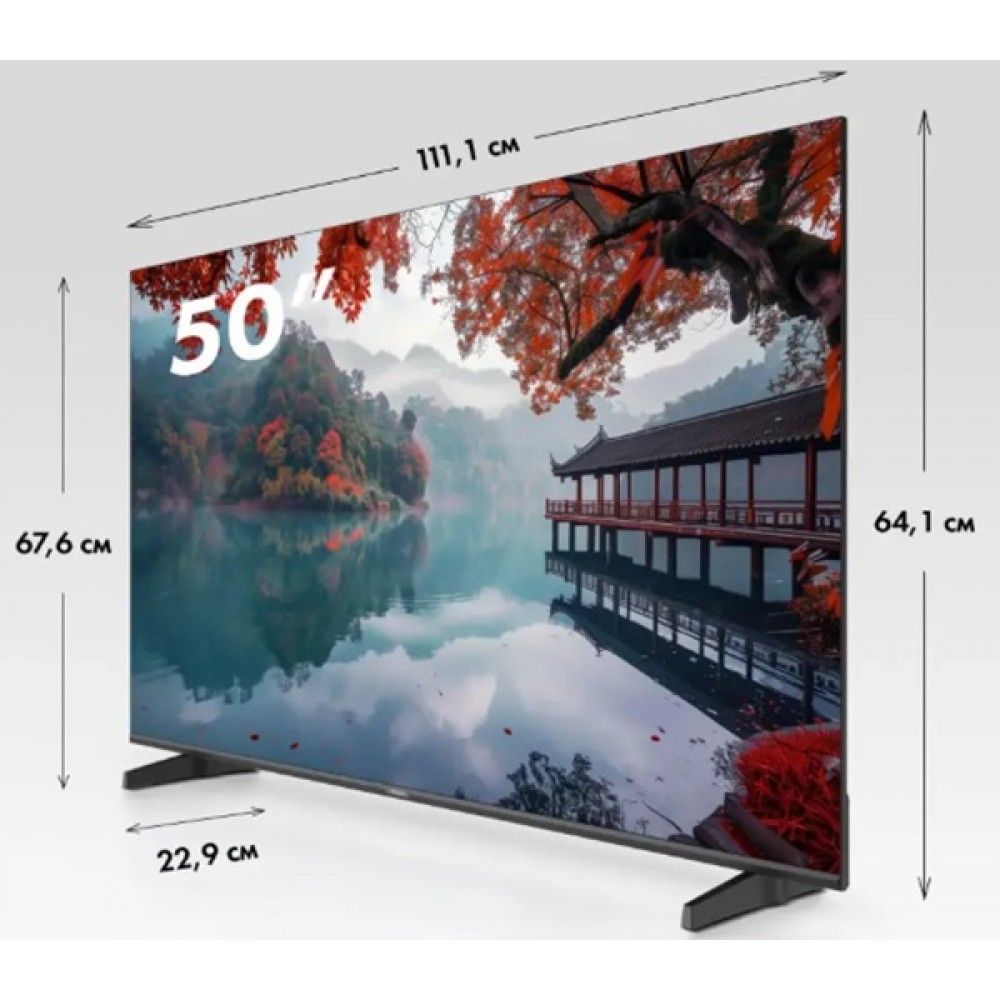 Экран: 50", 4K UltraHD, 3840x2160 Smart TV, Wi-Fi, BT: есть ОС: Android TV Тип подсветки LED: Direct LED Размер VESA: 200 x 300 С подставкой.: 1111 мм х676 мм x229 мм