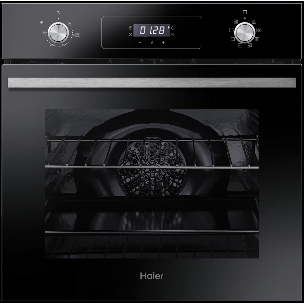 С помощью таймера можно программировать определенное время работы. Haier HOD-P08WGB оборудован съемными направляющими и двойным стеклом на передней стороне. В наборе с духовым шкафом поставляются противень и решетка.
